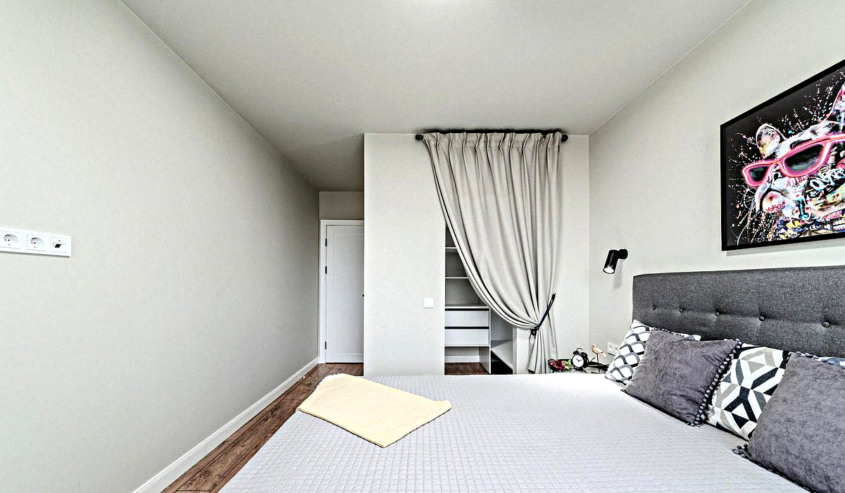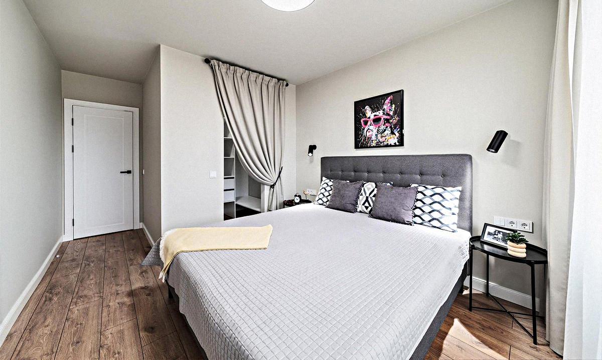 Bedroom: A cozy room with a double bed and a large wardrobe.
