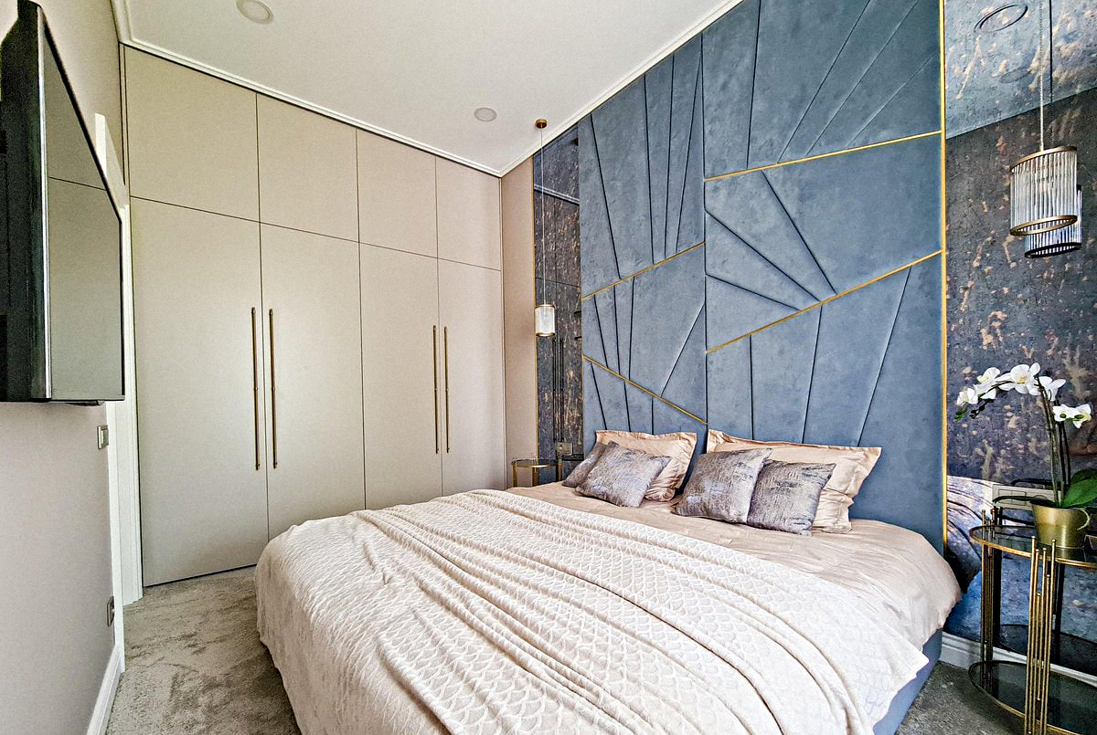 Bedroom: A cozy room with a double bed, a large built-in wardrobe, and a Smart TV.