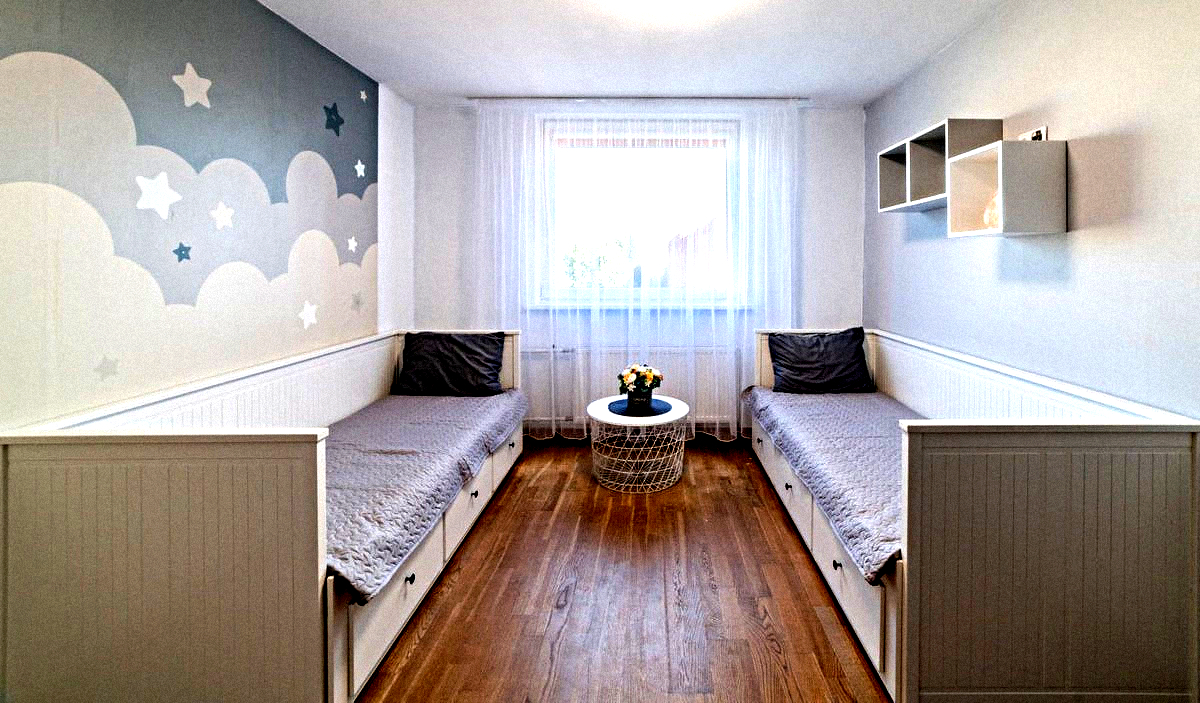 Bedroom: A comfortable room with two single beds and a wardrobe.