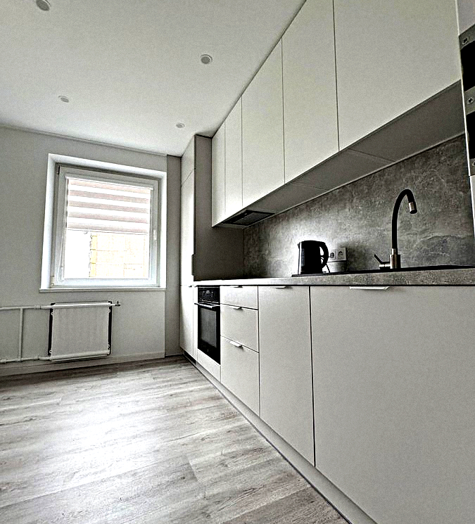 Shared kitchen: A sunny room with all necessary appliances and kitchenware.