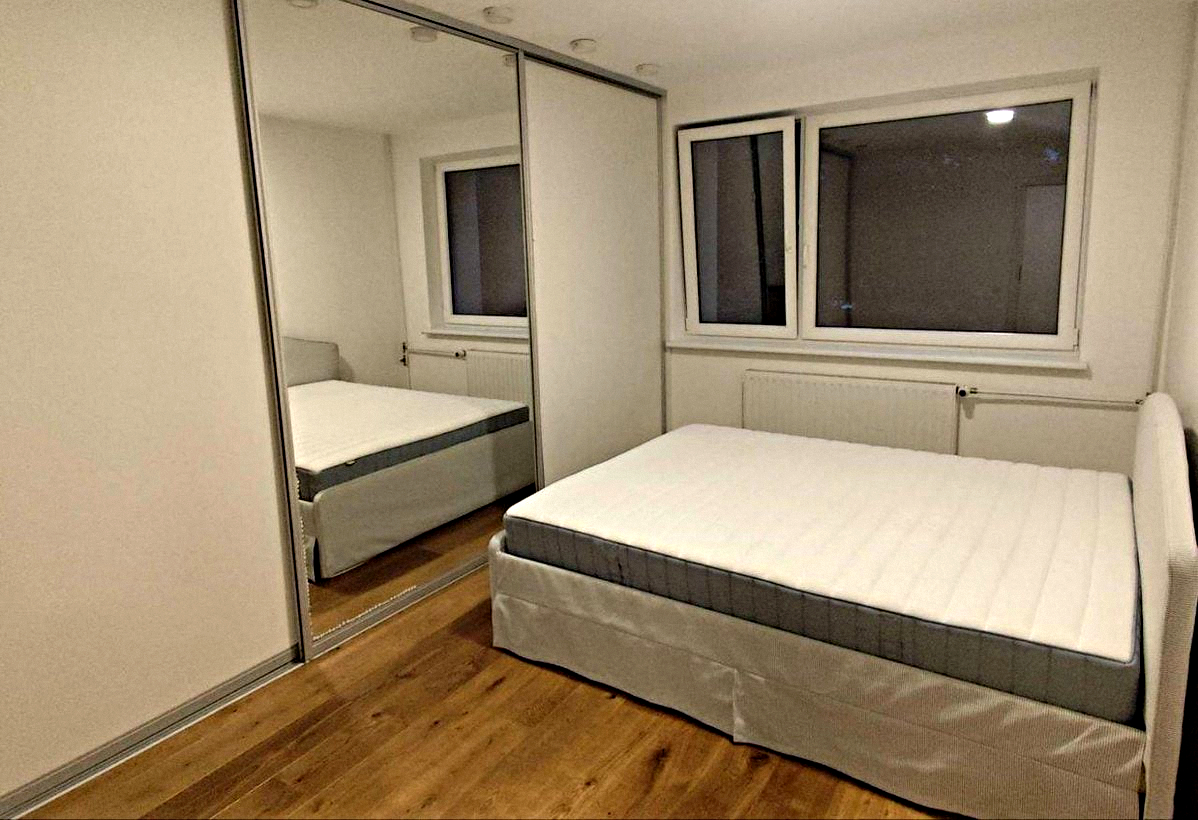 Bedroom: A cozy room with a double bed and a wardrobe with a mirror.